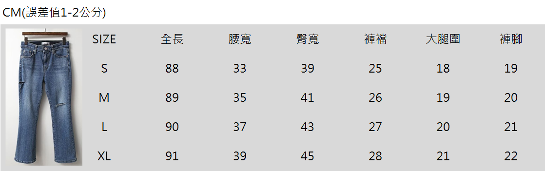 No.627隱形鬆緊腰單邊大腿+側破牛仔喇叭褲~S-XL